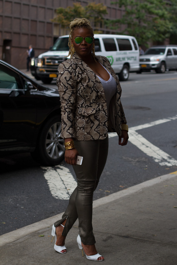 For my latest TV twirl, I slipped on a python blazer from Altuzarra’s collection with Target, and paired it with gold Blank Denim jeans, a Moschino belt, and a white tee.
