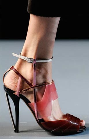 Her sandals are from Fendi’s Spring 2014 collection. Check out a similar pair on the runway.