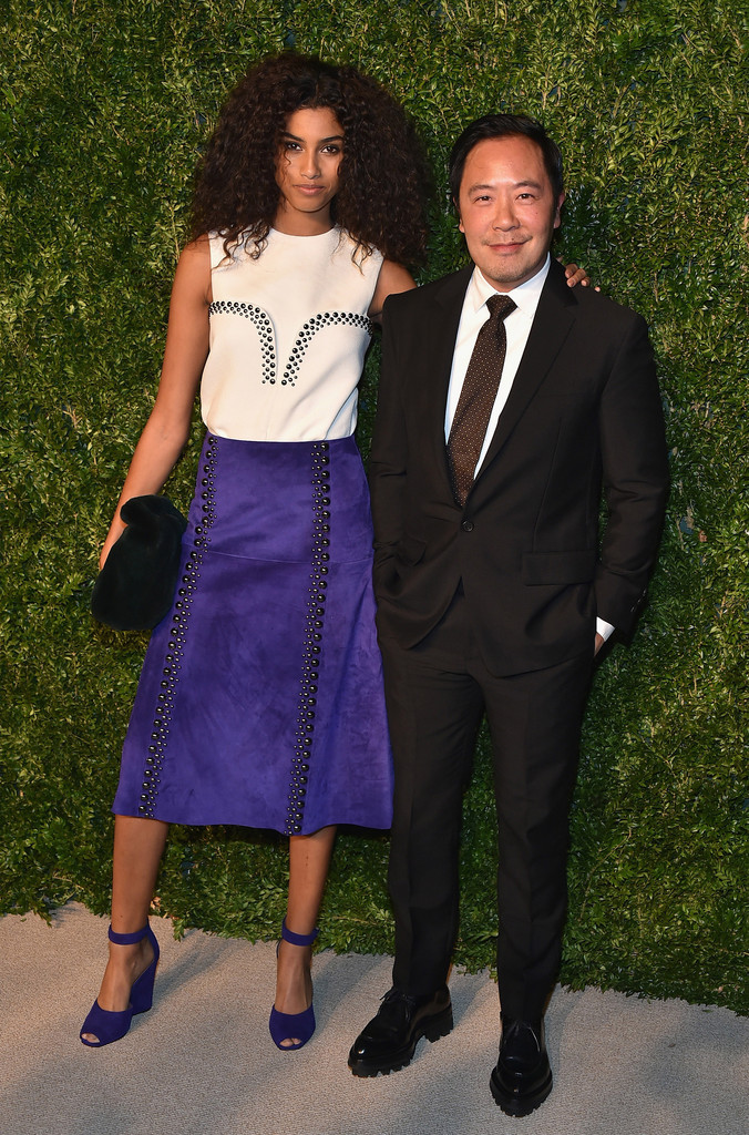 Model Imaan Hammam looked gorgeous next to Derek Lam in an ensemble from his Spring 2015 collection.