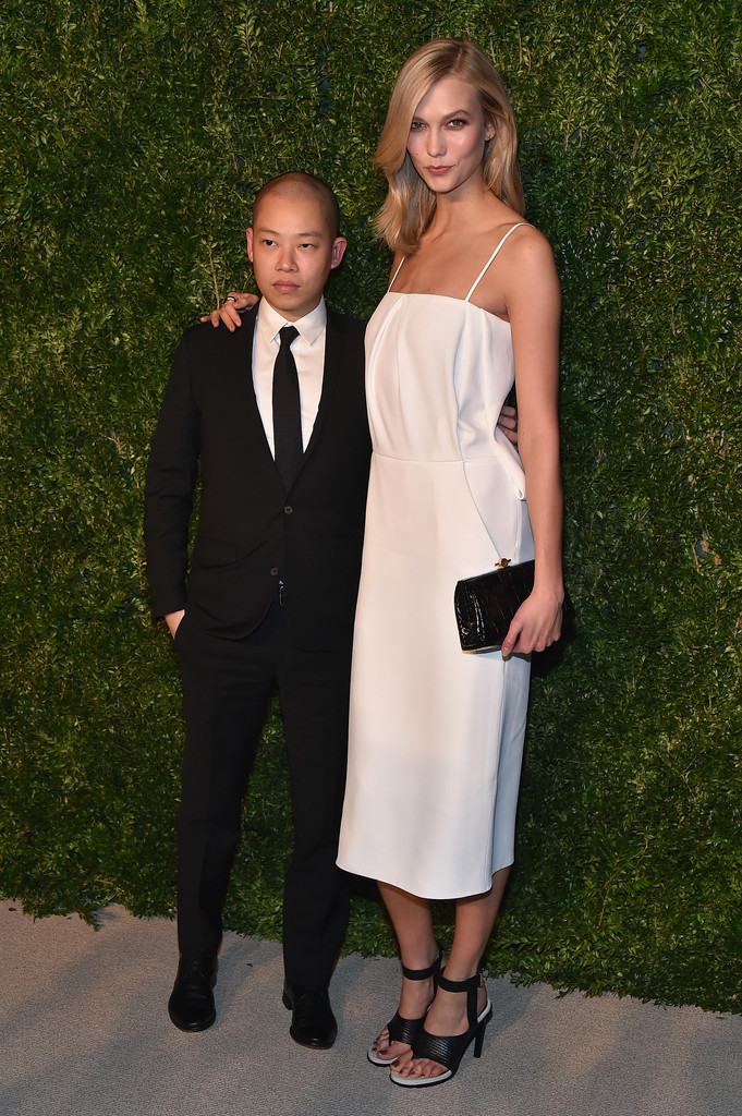 Karlie Kloss looked chic in a little white dress by date Jason Wu.