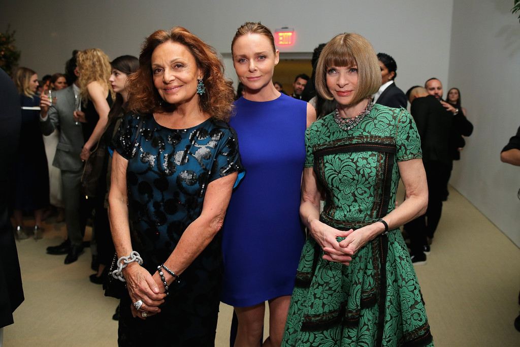 Diane von Furstenberg, Stella McCartney and Anna Wintour were picture perfect at the reception. While von Furstenberg and Wintour opted for colorful patterns, McCartney stuck to a vivid solid blue dress.