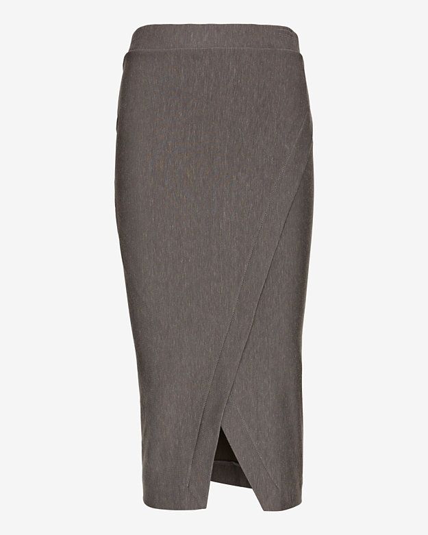 The classic midi wrap skirt features an elastic waistband perfect for a snug but comfortable fit.