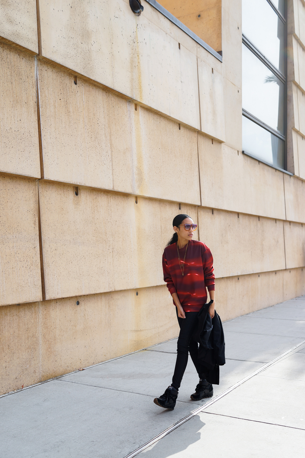 With an added dose of minimal flair and an enviable sneaker game, this Bomb Blogger proves that sporty can also be sexy. As you peruse her blog, it’s evident that Aleali loves a good crop top, funky jackets and loads of black. I’m here for it all!
