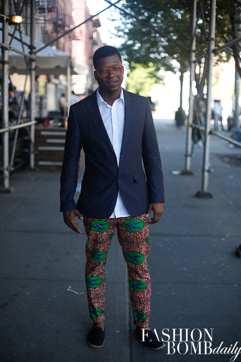 Her co-designer, Corey, showed how to rock the pants for men, pairing them with a button down and a blazer.