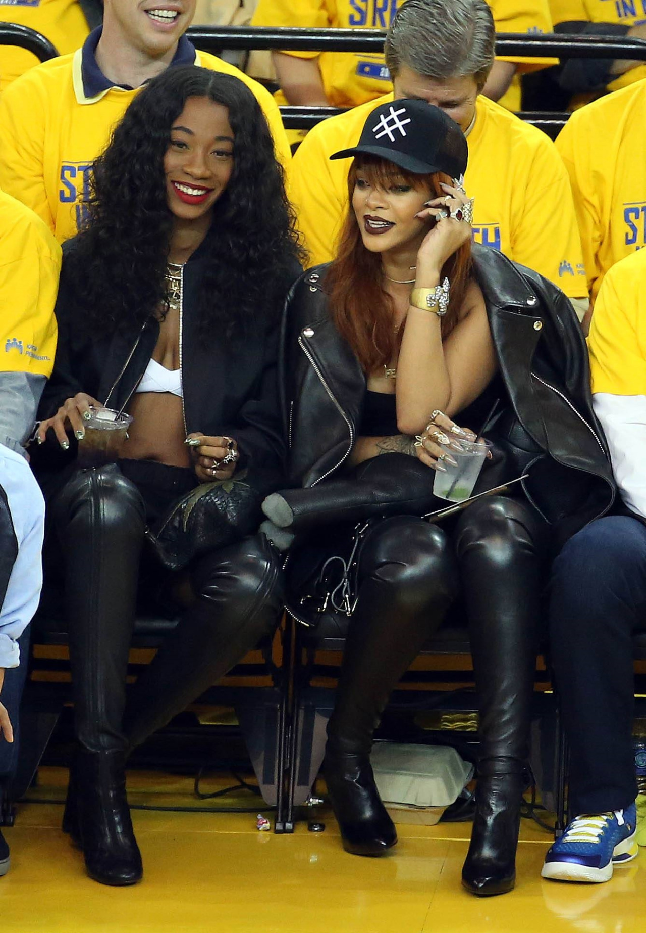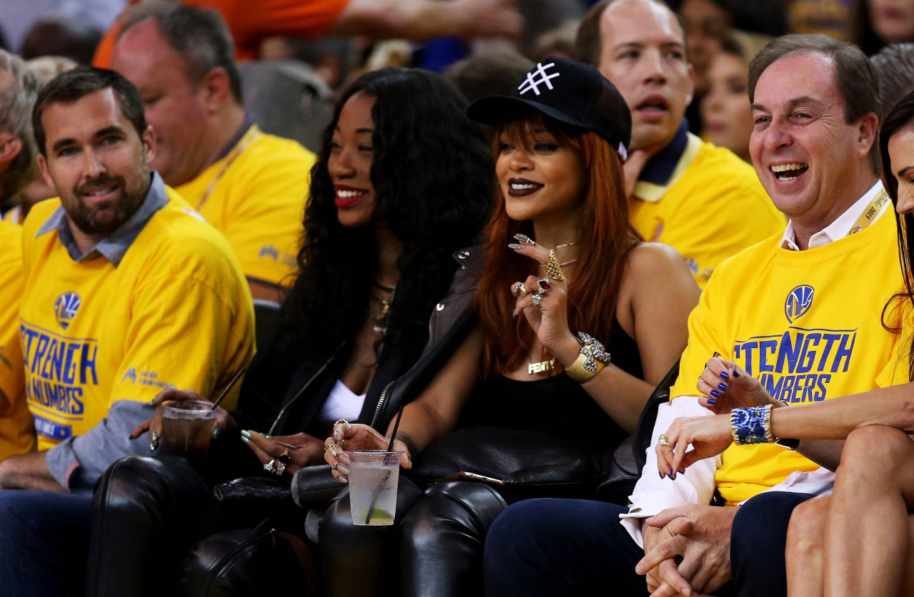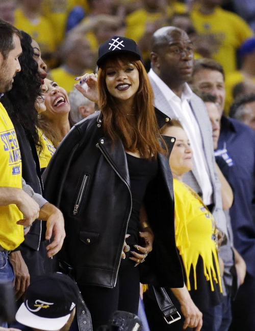 Last night, besties Rihanna and Melissa Forde were spotted courtside at Game One of the NBA Finals. The stylish duo looked rocker chic in coordinating black ensembles and were all smiles throughout the epic (and lengthy) match.