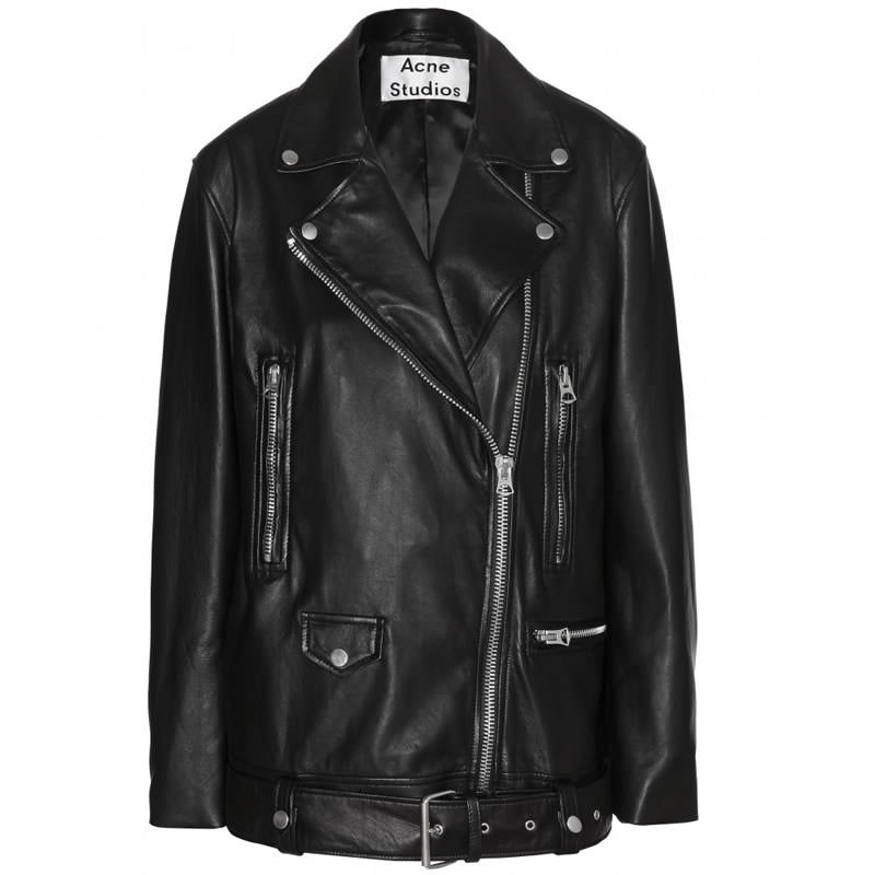 Her signature leather jacket is currently sold out but you can find similar alternatives here and here.
