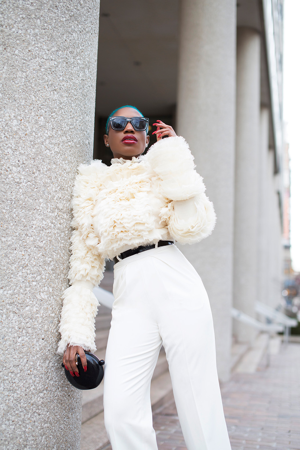 From monochromatic wonders to her signature fluffy adornments, this style maven never fails to inspire. I promise you, her blog is loaded! The photography is flawless and her confidence literally jumps through the screen. Hands down, she’s one of my personal blogger faves.