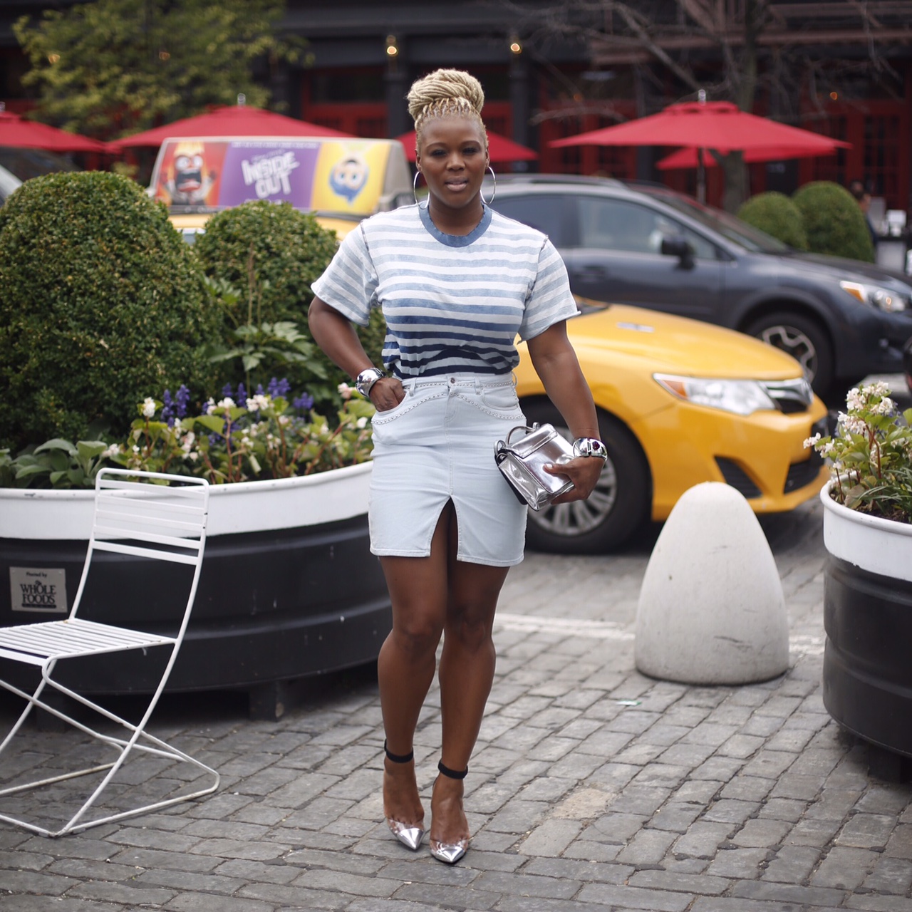 I got raked over the social media coals for my look (LOL), BUT in case you were wondering, I wore an NSF striped top, an Iro studded skirt, and Gianvito Rossi Silver and PVC pumps for my day in the city.