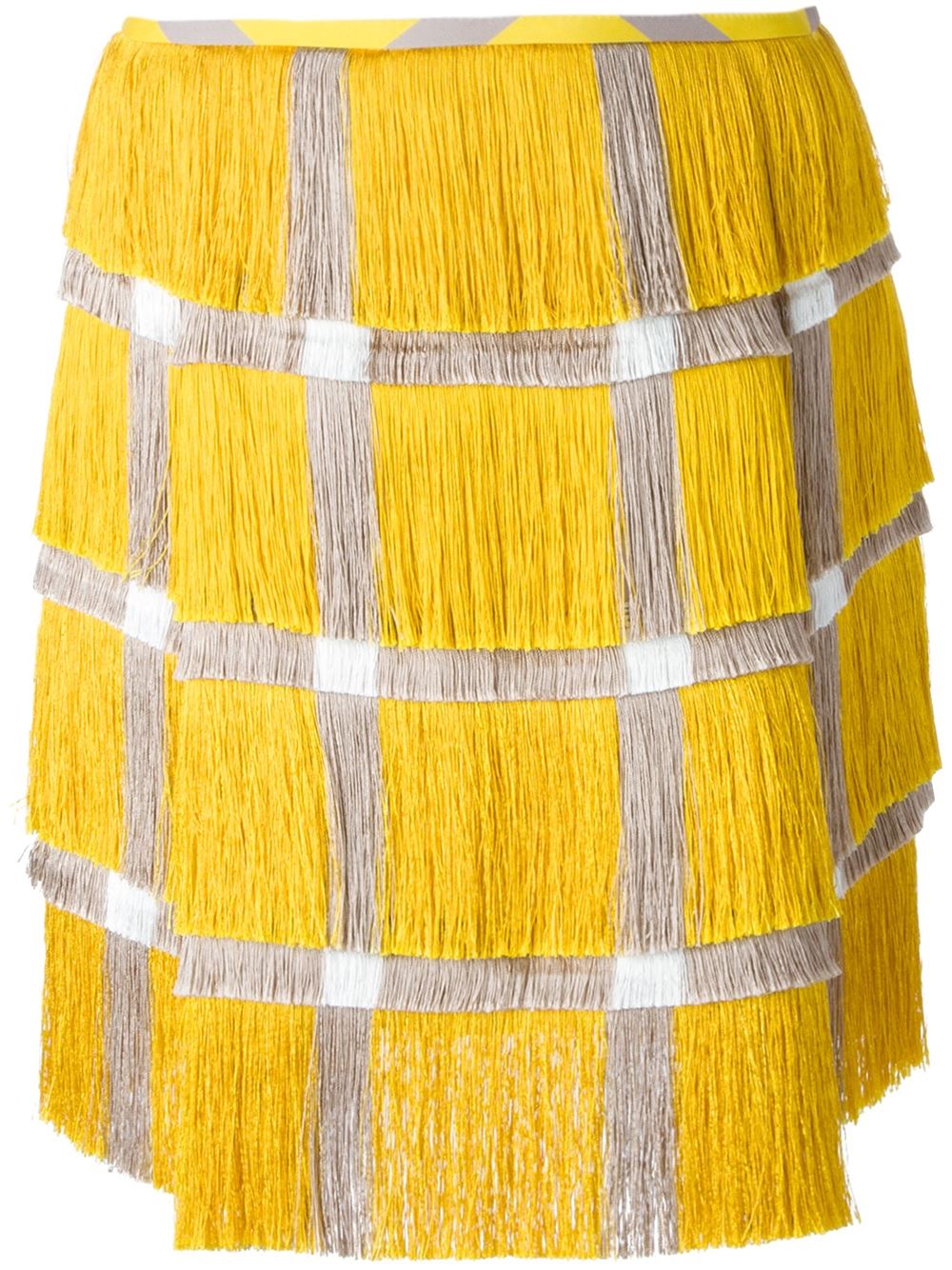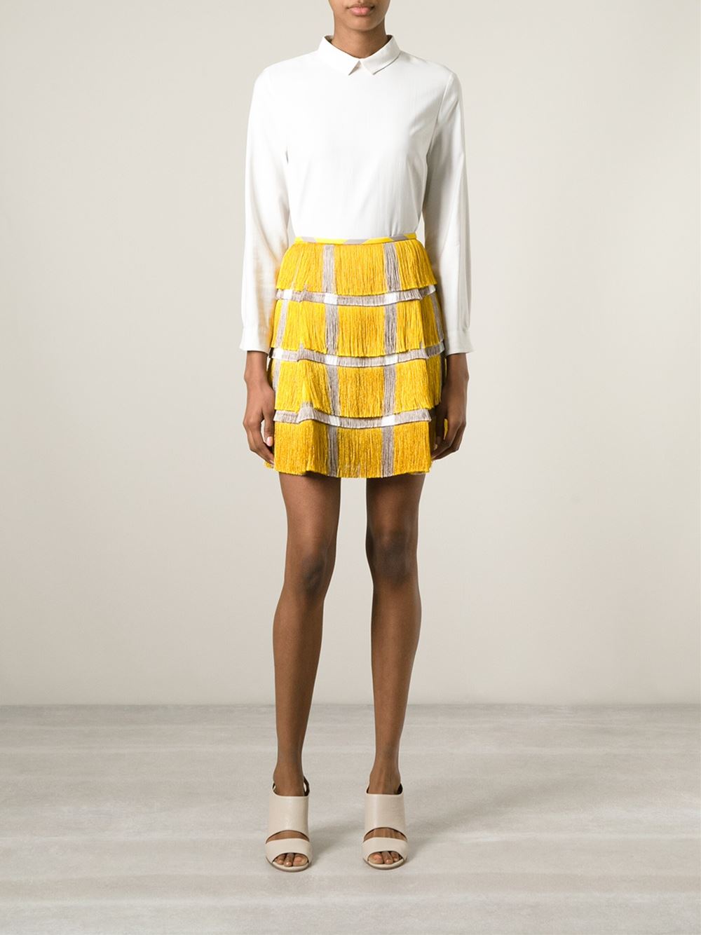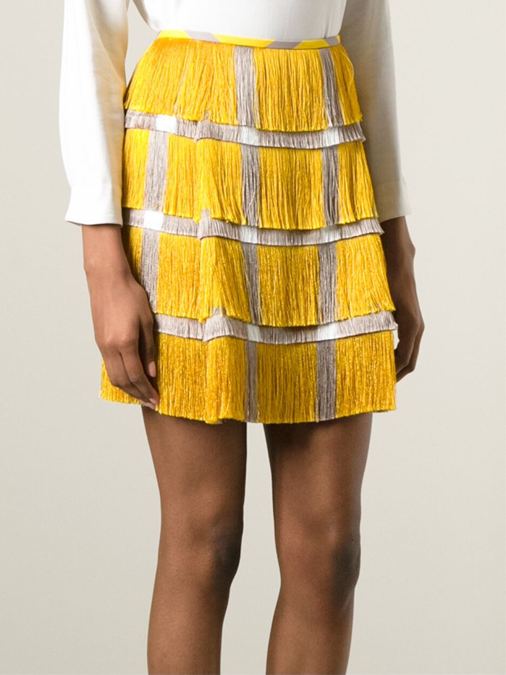 After seeing Hilary Duff pump in Marco de Vincenzo’s Yellow and Silver Fringed Shirt, I quickly fell in love with the brand’s coordinating skirt.