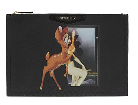 Her clutch has Riccardo Tisci’s of Bambi on the front.