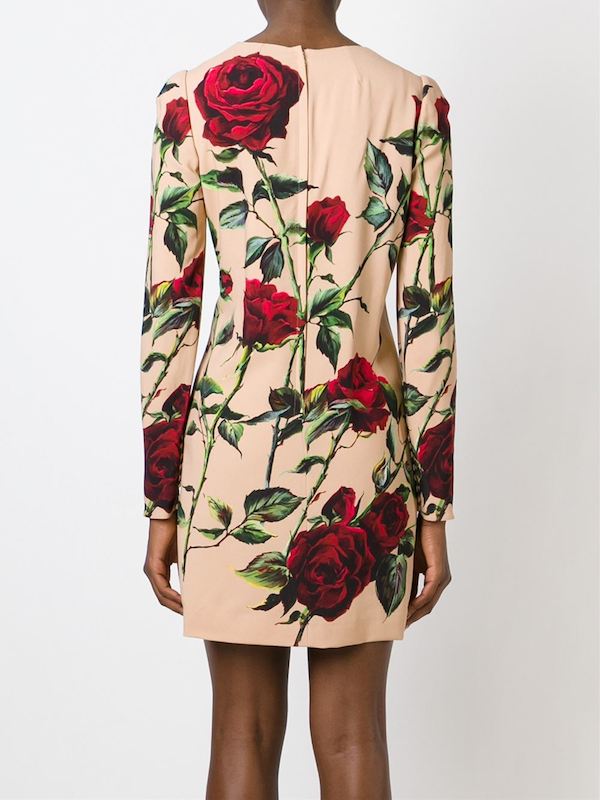 Her nude and red stretch silk blend rose print shift dress features a round neck, rear zip fastening and long sleeves.