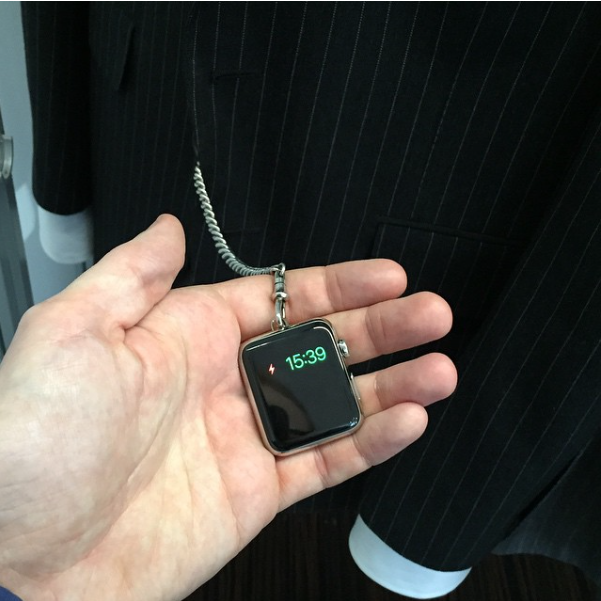 Never one to follow the crowd, Tom Ford had a small surprise in store for editors at his Spring 2016 showing. In addition to the bright suits, the designer also offered a new way of wearing the Apple Watch; as a pocket watch. The diner looped a chain through the button holes of a three-piece suit and slid the face of the tech device into a pocket for what we have to say is a much more discreet look that when worn on the wrist. Any takers? (The Fashion Spot)