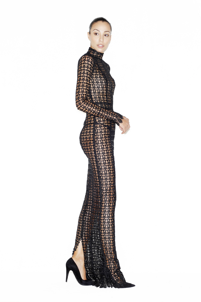 The mock neck maxi has a back slit for ease of movement.