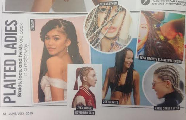 The story went on to include other women of color who have adopted braids, locs, and the like, and highlighted Zendaya and Zoe Kravitz. Critics of the article wondered why Teen Vogue wouldn’t use at least one darker skinned woman to display the trend.