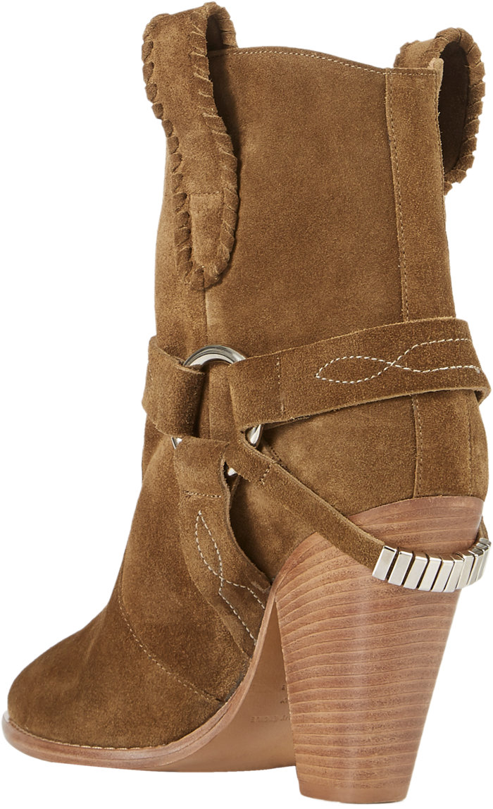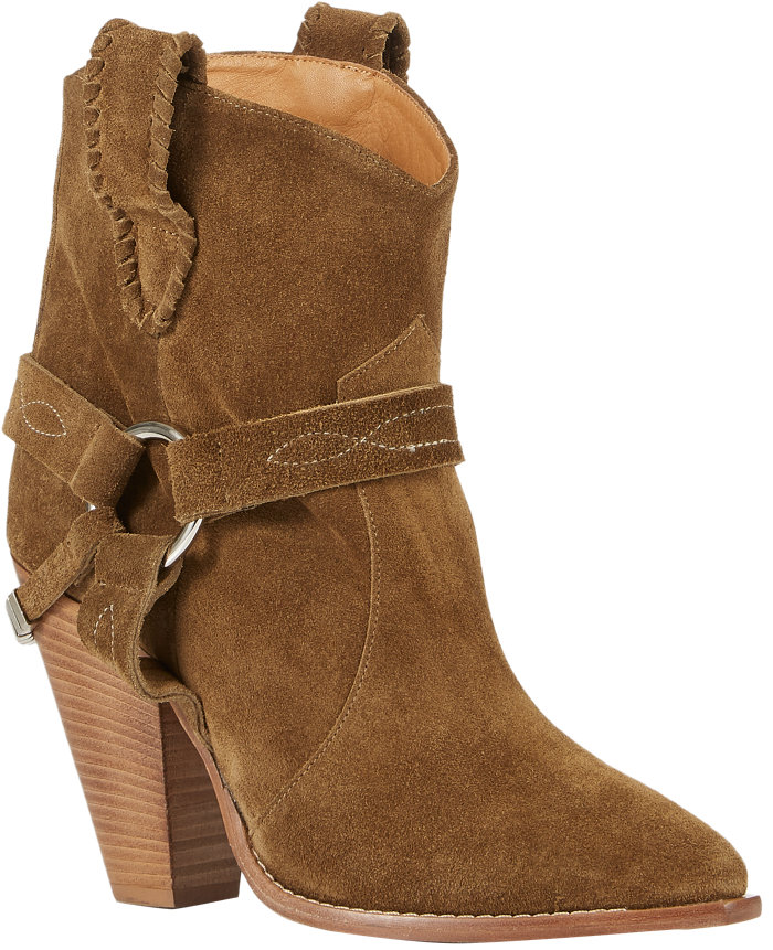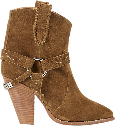 Her point toe boots have a 3.75″ heel and polished nickeltone hardware.