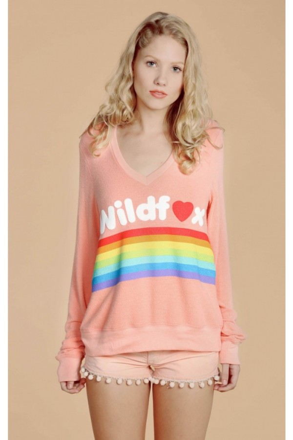 But she really broke it down in a pink Wildfox Dreams Come True V-Neck baggy sweatshirt.