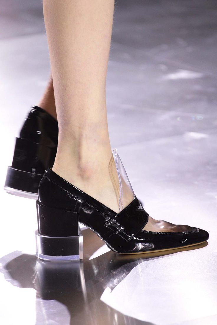She hangs out on a yacht in a strapless swimsuit and Maison Martin Margiela Fall 2015 plexi accented oxfords.