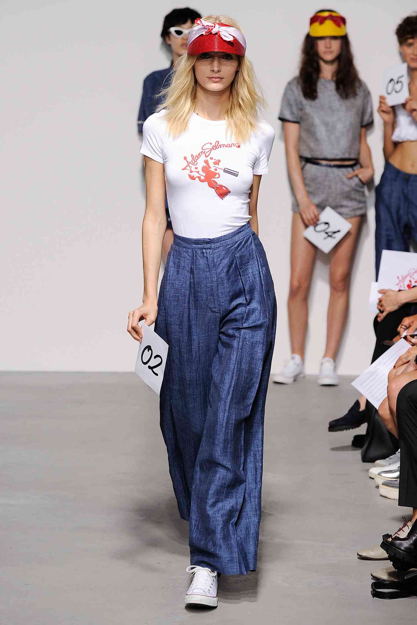 She offsets the jacket with a Spring 2015 tee by frequent collaborator and stylist Adam Selman. She stomps around in Vetements Spring 2015 thigh high boots.