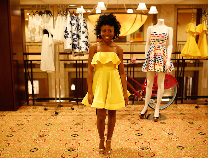 Elle Varner passed through, looking patriotic in a red, white, and blue striped set by Black Fleece. In response to the question, “What are you working on to feel Altogether Beautiful,” she said, “I’m working on loving myself. And when you love yourself, you can’t help but feel beautiful.” Preach!