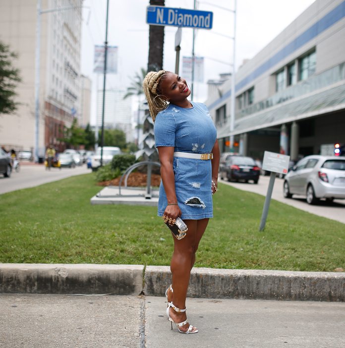 For the 4th, I wore a House of Holland denim dress, then added white accents with my Moschino Good Girl Belt.