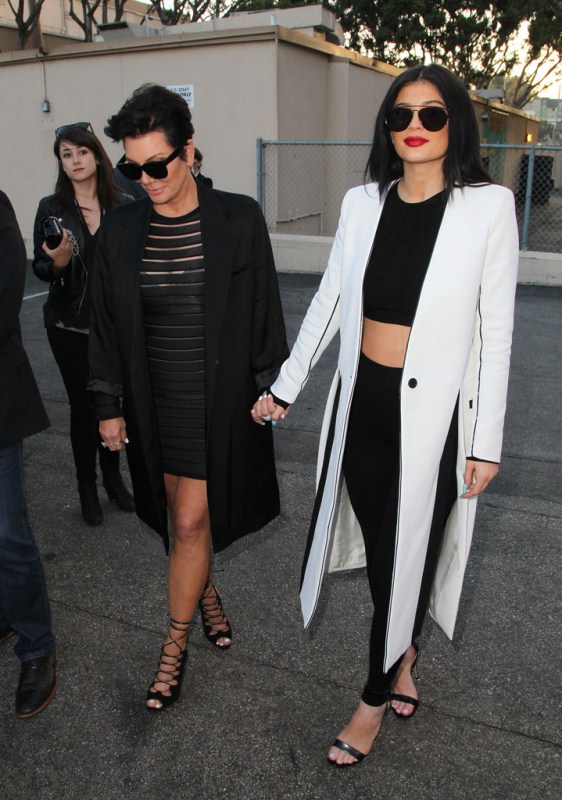 It was mother-daughter night for Kylie and Kris Jenner who were spotted at The Gallows Hollywood Premiere. Kylie thew on a $1,025 KLS by Kimora Lee Simmons Fall 2015 White Sophia Coat for the occasion: