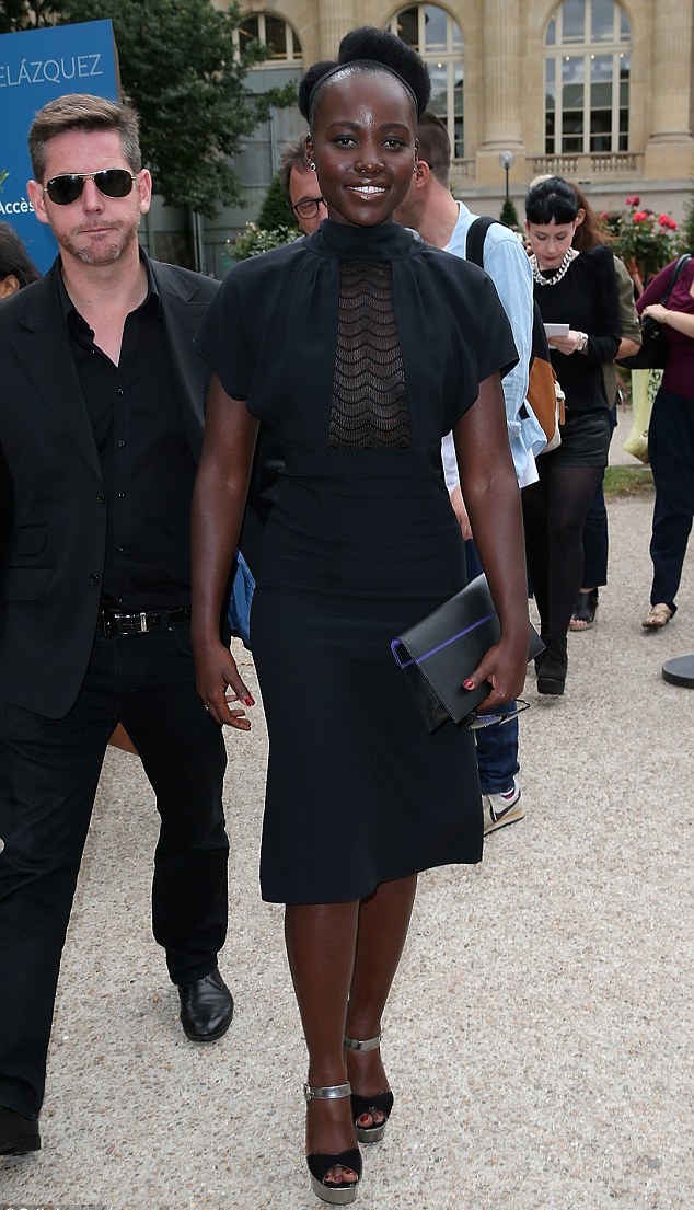 Lupita Nyong’o also indulged in some Paris Haute Couture as she was spotted at the Martin Margiela Fall 2015 show in a black dress from the brand’s Resort 2015 collection. The sophisticated piece boasts a sheer chest panel and cap sleeves. Silver and black platforms finished off her sleek look. Yes!