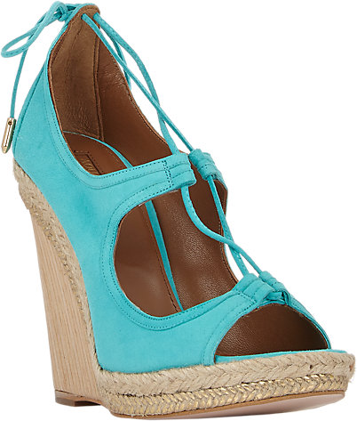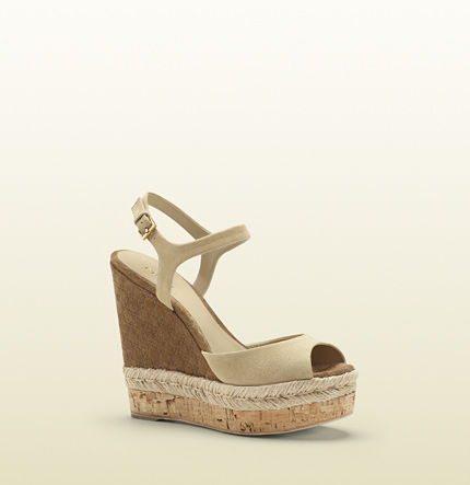 Her shoes have a cork heel. See a similar style below.