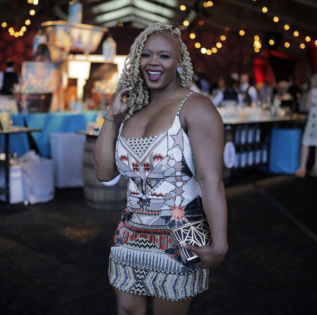 Erika Liles looked lovely in a Stella Jean Sordone printed maxi dress.