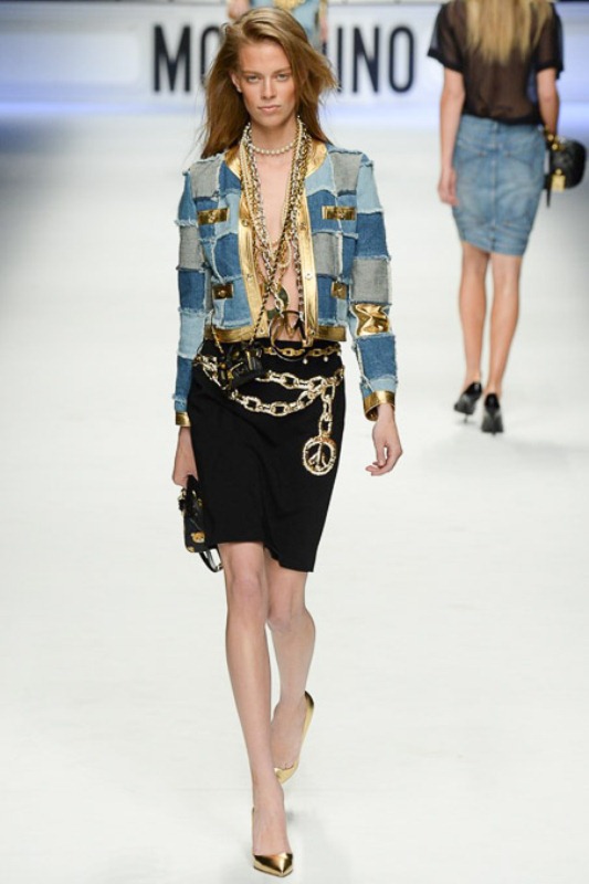 September 23rd marks the much anticipated Season 2 Premiere of the hit television series Empire . Fox just released a teaser and it looks quite intriguing. In an upcoming episode, Cookie Lyon aka Taraji P. Henson visits Lucious Lyon in jail. For the occasion, diva Lyon donned copious necklaces, a white T-shirt and a Fall 2015 Moschino Round Neck Gold Detail Patch Denim Jacket: