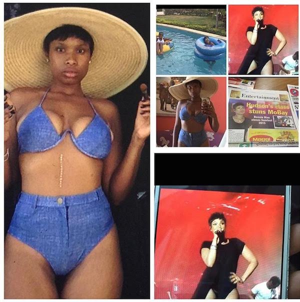 Jennifer Hudson is vacationing in sunny Jamaica and posed for the ‘Gram in the same $68 Nasty Gal Jean Genie Denim Bikini Top and matching $68 High-Waisted Bikini Bottom that Nicki Minaj sported for the filming of her All Eyes On You video: