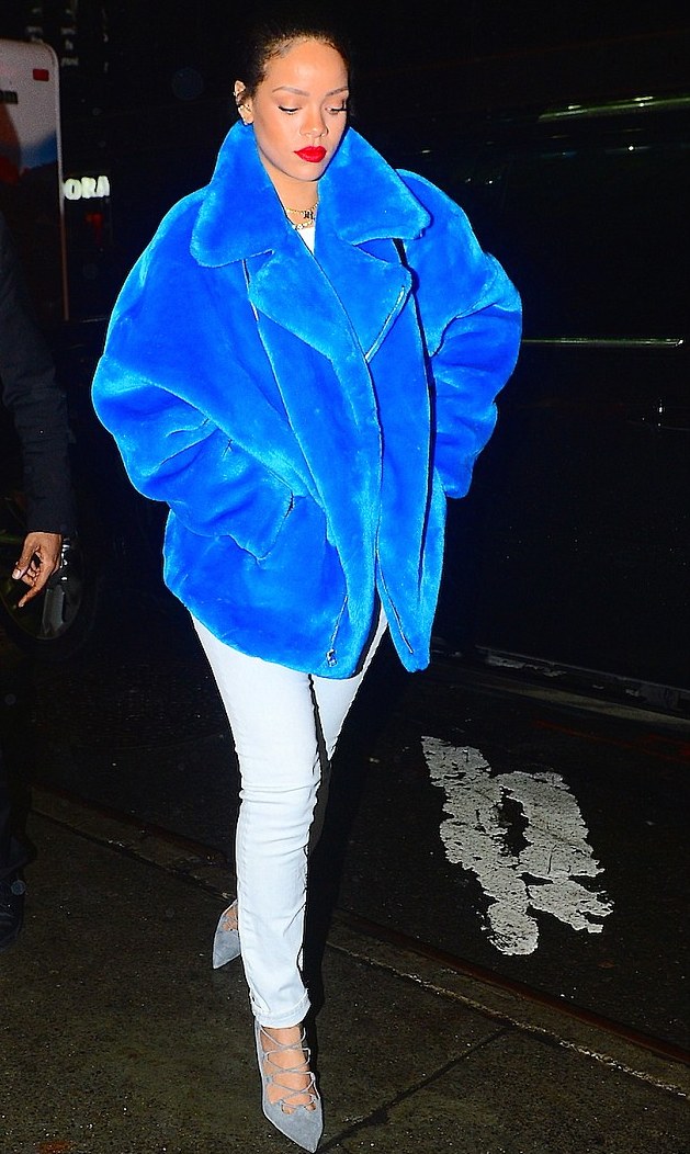 You can also use the color wheel when coming up with color combinations for your makeup. It can help you decide which makeup color to wear so that you don’t match your eyeshadow with your outfit. Check out how Rihanna paired gorgeous red lipstick with her blue coat: