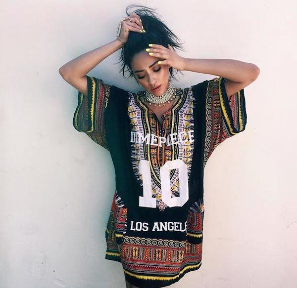 ‘Pretty Little Liars’ actress Shay Mitchell kept it casually cute on the ‘Gram dressed in a $48 Dimepiece L.A. Oversized Dashiki:
