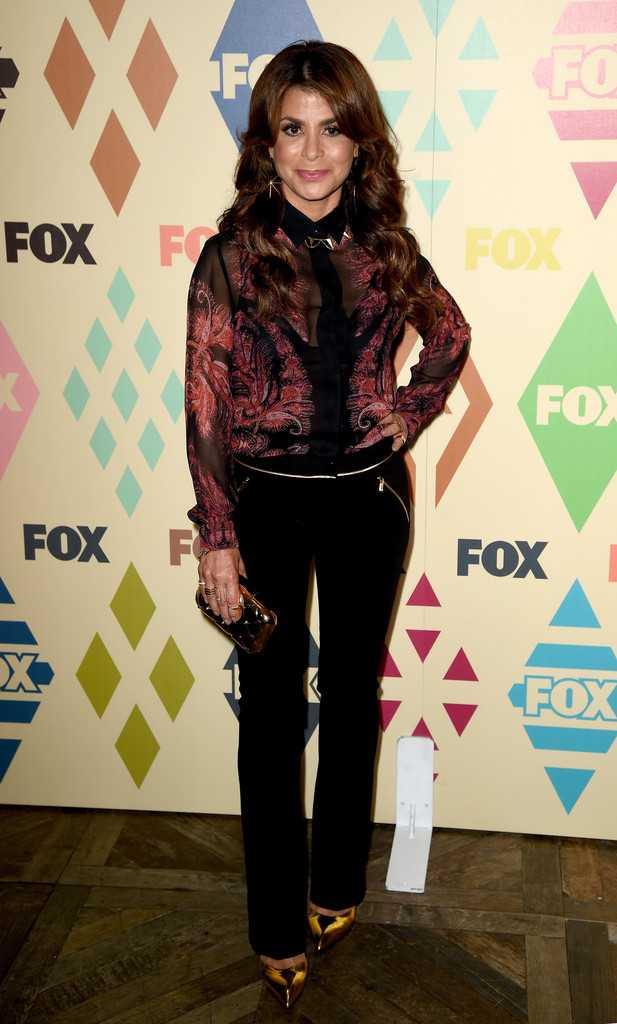 It’s been awhile since we’ve seen Paula Abdul! The former American Idol judge paired a sheer printed blouse with black pants.