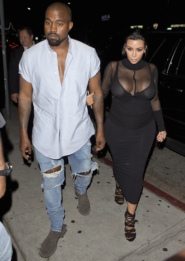 Kim and Kanye blessed the festivities in pared down ensembles, with Kim in a sheer black and Balmain braided sandals.