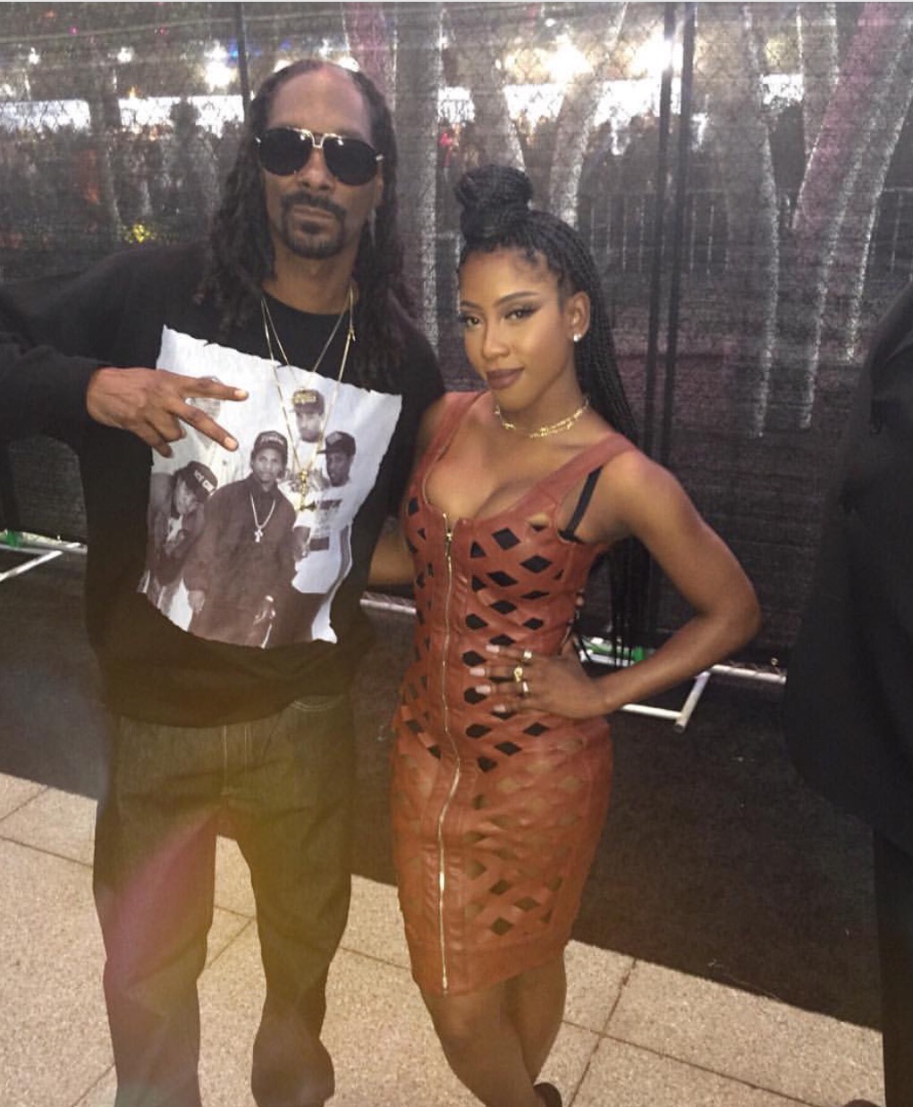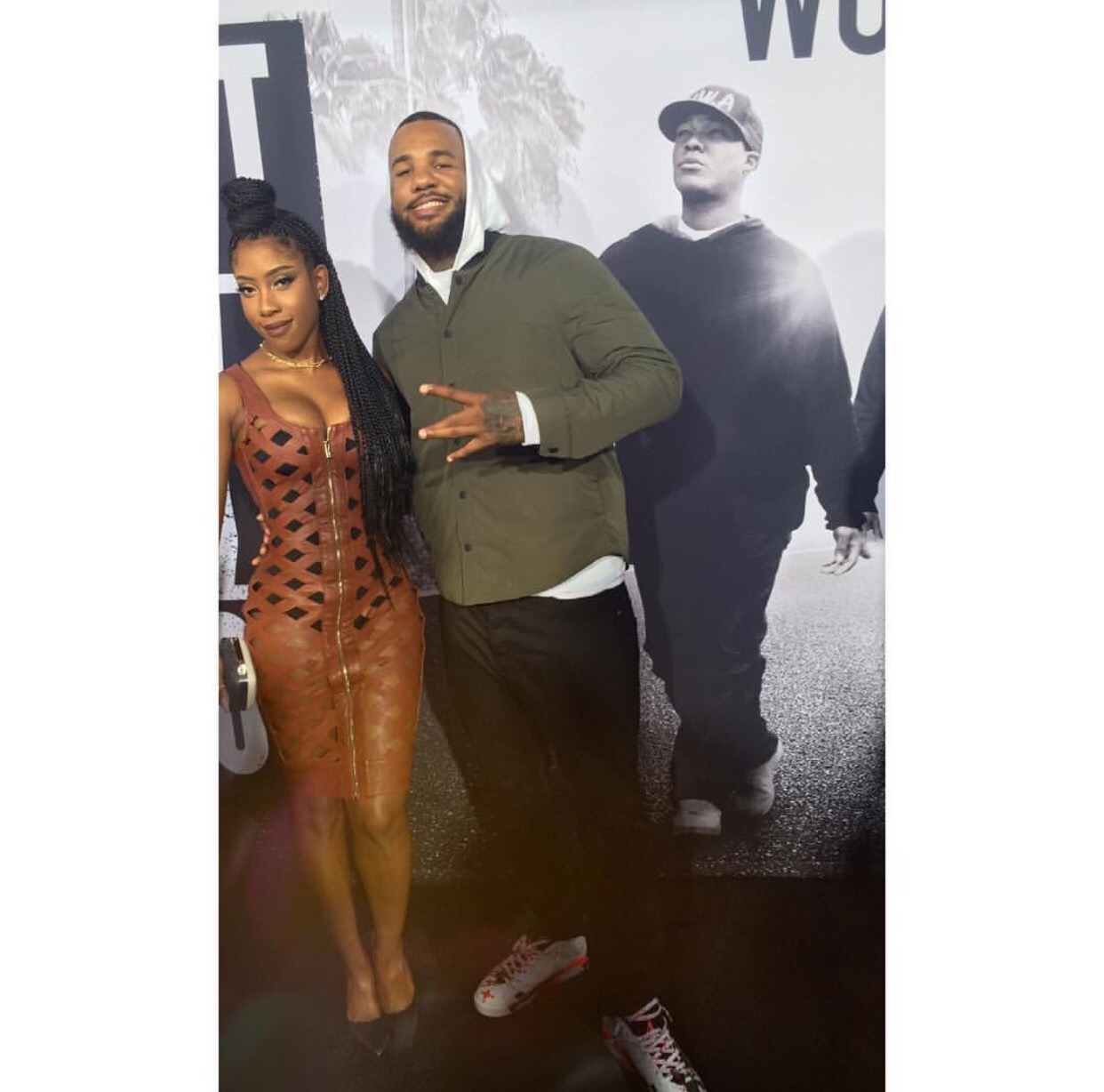 Sevyn Streeter attended last night’s Straight Outta Compton Premiere, and instagrammed a shot of her in a $167 House of CB Alandrea Tan Leatherette Open Lattice Dress: