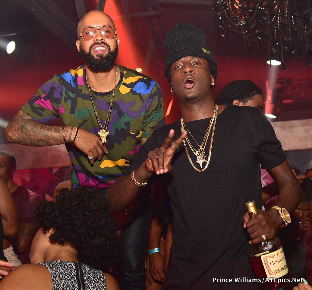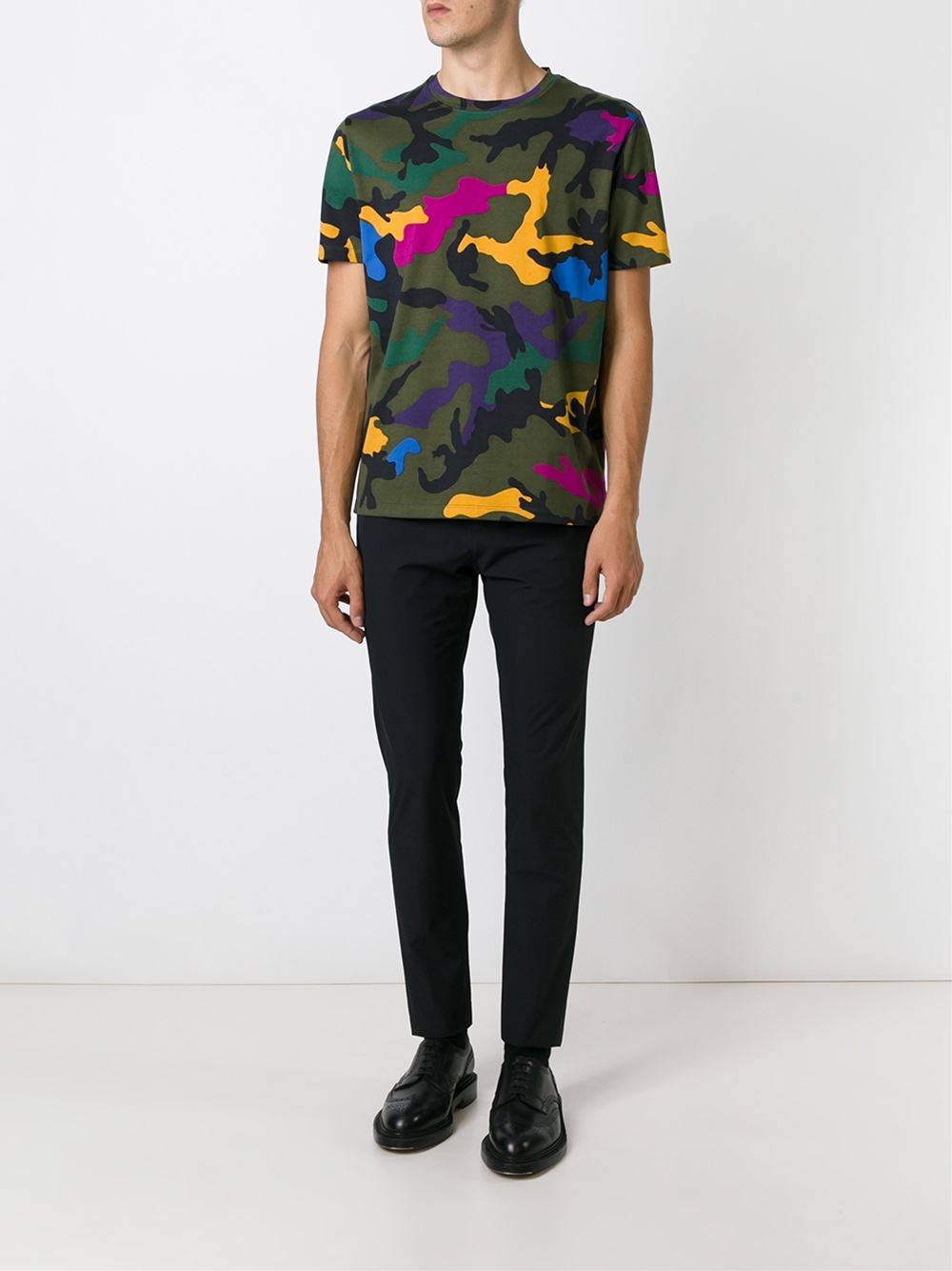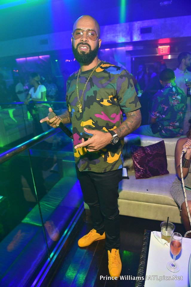 Kenny Burns hosted a party with K Camp last night at Prive in jeans, bright yellow sneakers, and a $590 Valentino Multicolor Camouflage T-Shirt: