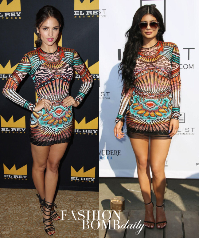 While Kylie accessorized with Dior Technologic shades and Stuart Weitzman nudist sandals, Eiza opted for eye catching lace up heels and pink lips.
