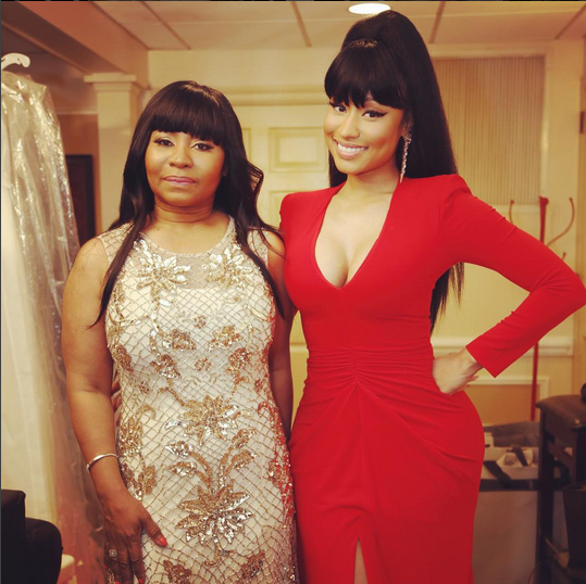 I’m really loving bold, primary colors right now! From bomb blues to yummy yellows, I find myself gravitating towards more simple shades. And, Nicki Minaj did the same! While posing for a quick pic with her mom at her brother’s wedding, the rapper/songstress shut it down in a ruched red gown by Alexander McQueen. She’s so gorg!