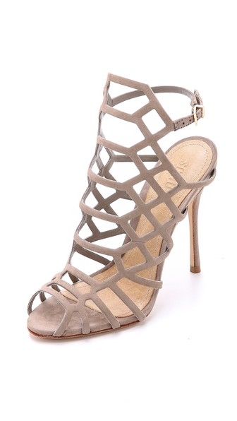 Her delicate strappy Schutz sandals are crafted from rich nubuck and have a slim, buckled ankle strap.