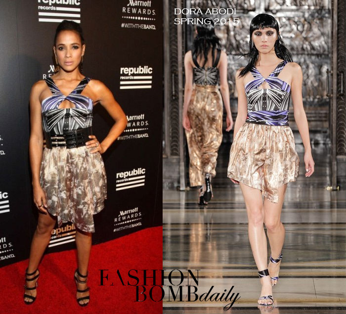 It was all about prints for Dania Ramirez at the Republic Records VMAs After Party. For the fête, she slipped on a Dora Abodi Spring 2015 Printed Halter Dress: