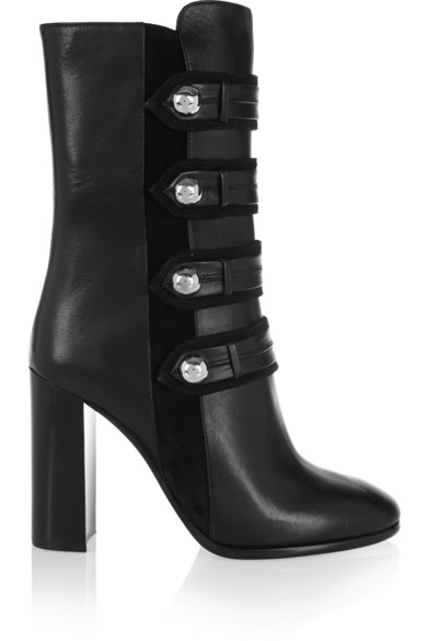 I love her boots! They’re trimmed with suede and finished with silver admiral buttons.