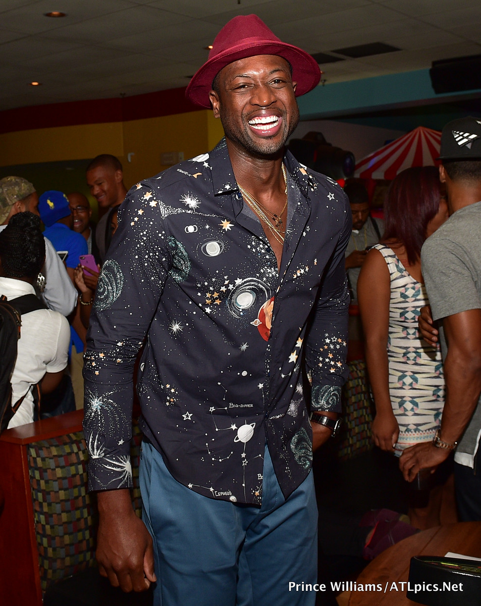 Dwyane Wade, Gabrielle Union, and many more joined Ludacris for his Weekend Bowling Tournament to kick off Ludaday Weekend. For the occasion, Dwyane skewed spiffy in a $980 Valentino Cosmo Planet Print Shirt: