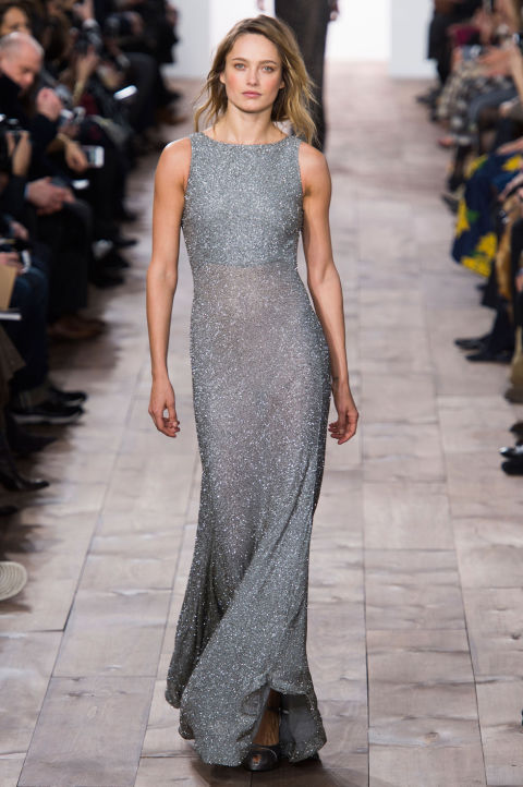 Her exact gown wasn’t modeled in the Fall 2015 collection, though you can see a similar Kors dress below: