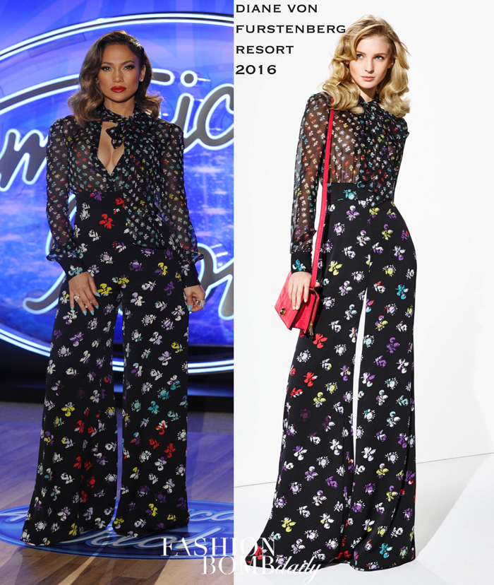 J. Lo got punchy with prints at the Atlanta stop for American Idol in a Resort 2016 look by Diane von Furstenberg.