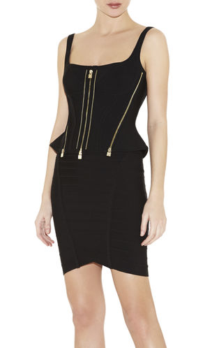 Her top has zipper details at the bodice.