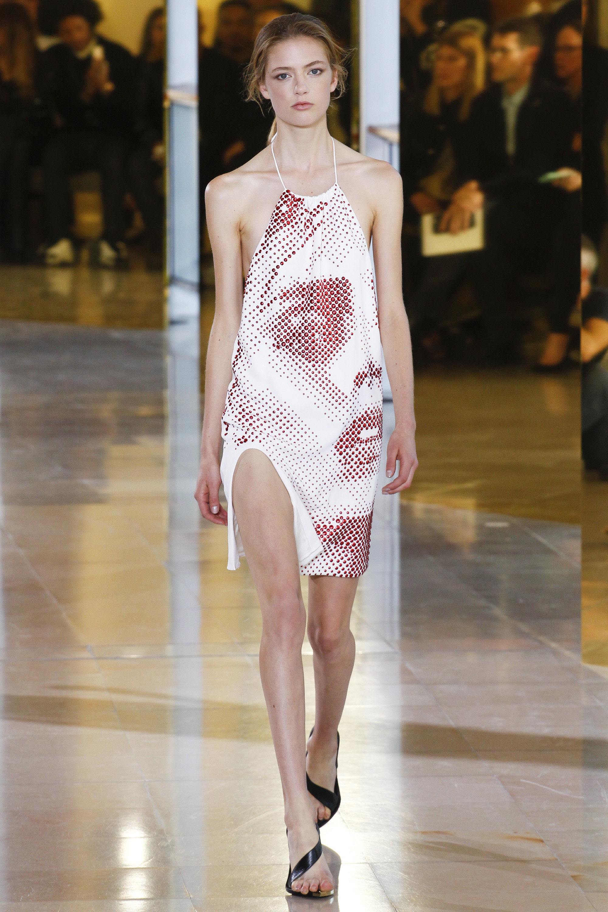 If you don’t know much about Anthony Vaccarello, know this: he is the Belgian-Italian fashion designer behind countless red carpet looks for celebrities, such as Diane Kruger, Ciara, Nicole Richie, and Kelly Rowland. Plus, he was recently named creative director of Versus Versace (and took his first solo bow for the brand 11 days ago), so expect to see his sexy, celebrity-admired aesthetic even more exemplified moving forward. Vaccarello’s Spring 2016 RTW Collection brought its fair share of understated ‘va-va-voom’ and its oft-expected leg-baring, asymmetric silhouettes.