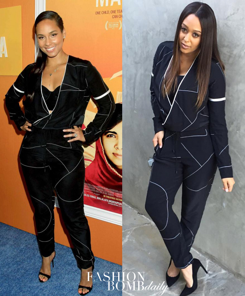 Tia Mowry posed in Instagram in the same $750 Public School Lodi Jumpsuit worn by Alicia Keys: