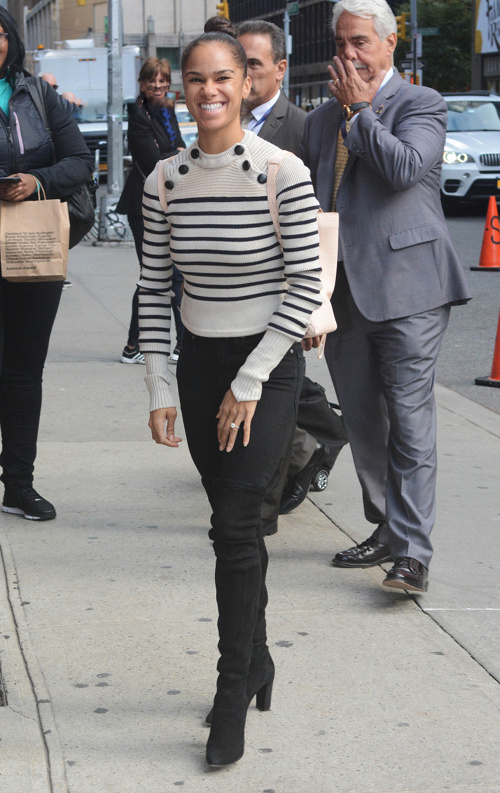 American Ballet Theatre Female Principal Dancer Misty Copeland performed on the Late Show with Stephen Colbert last night! She arrived at the studio in svelte black jeans, boots, and a $905 Isabel Marant Striped Hatfield Sweater: