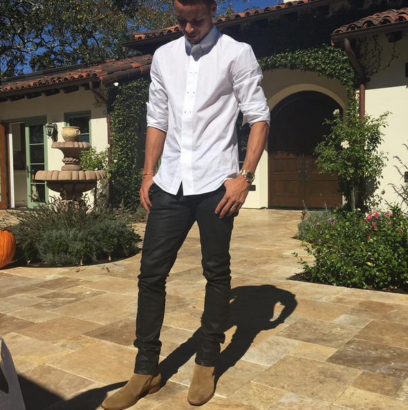 Its latest victim? Basketball player Stephen Curry, who took a picture with his beautiful wife Ayesha wearing a $2,390 Saint Laurent Bomber jacket and tan suede Chelsea Boots: