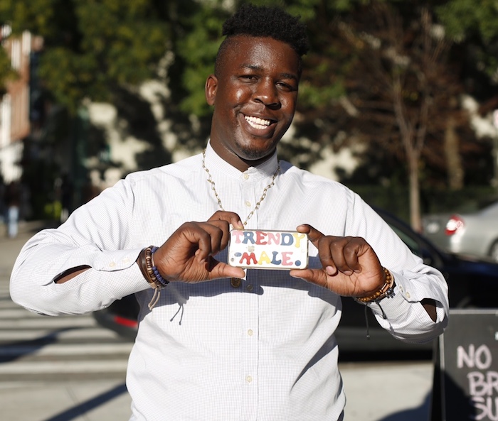 I was happy to finally meet former Fashion Bomber Roeman from New Jersey , who showed off his design skills with a plexi trimmed black outfit, modeled by friend Brielle.